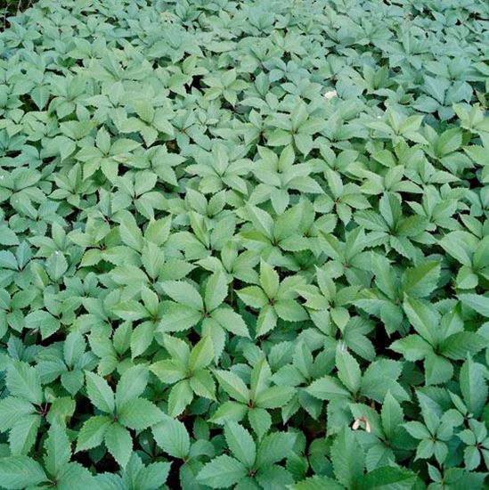 Отличное растение для влажных мест. Крупная вьющаяся лиана до 15-20 м. Молодые побеги красноватые, позднее темно-зеленые. Листья сложные, пальчатые. Листочки черешчатые, до 10 см с заостренной верхушкой, сверху темно-зеленые, снизу светлее, сизоватые. Цветки на тонких цветоножках в 3-6-цветковых зонтиках, собранных в верхушечные соцветия. Плод — синевато-черная ягода с сизым налетом.